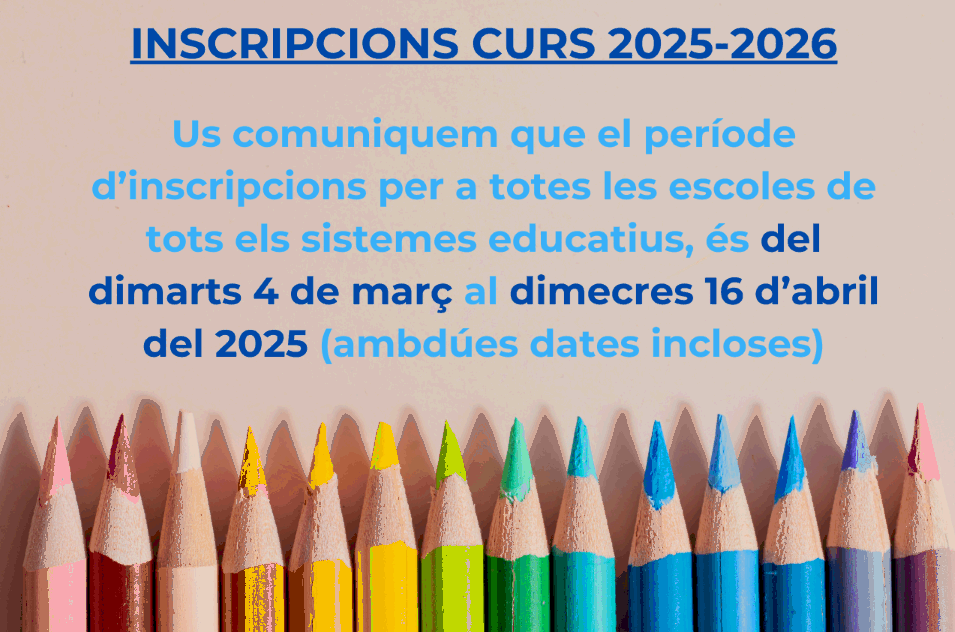 Les preinscripcions per al curs escolar 2025-2026 es podran fer del 4 de març al 16 d’abril