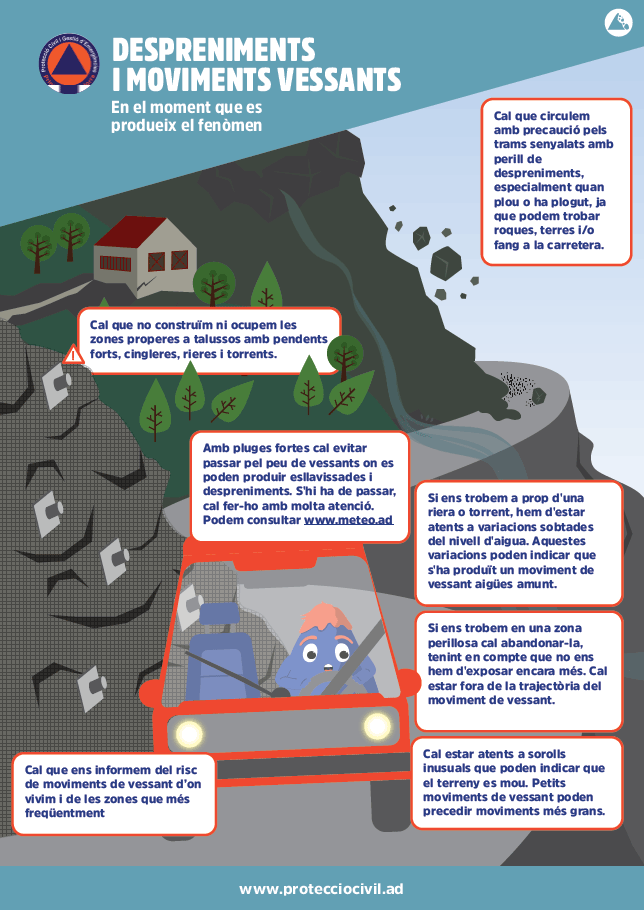 - Cal que ens informem del risc de moviments de vessant d'on vivim i de les zones que més freqüentem. Podem consultar IDE Andorra.