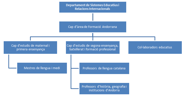 La intervenció de la Formació Andorrana s’adapta a l’organització específica de cada sistema educatiu i assumeix l’estudi de la llengua catalana i el medi, la història, la geografia, la cultura i les institucions d’Andorra.