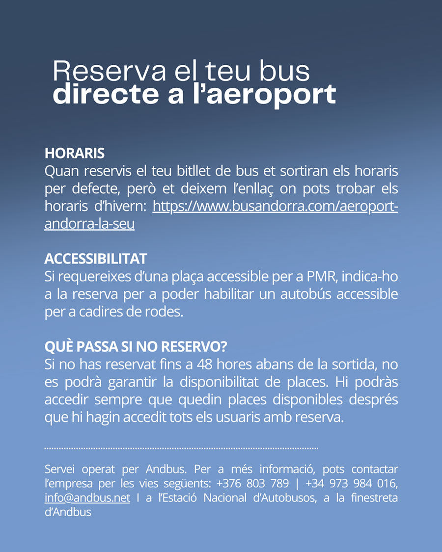 Informació relativa al servei de bus llançadora entre Andorra la Vella i l'Aeroport Andorra-la Seu