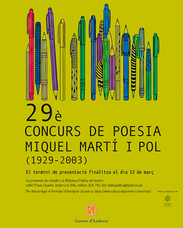 Descobreix tot allò relacionat amb Concurs de poesia Miquel Martí i Pol visitant el portal del Govern d'Andorra. Tots els serveis i informació detallada.