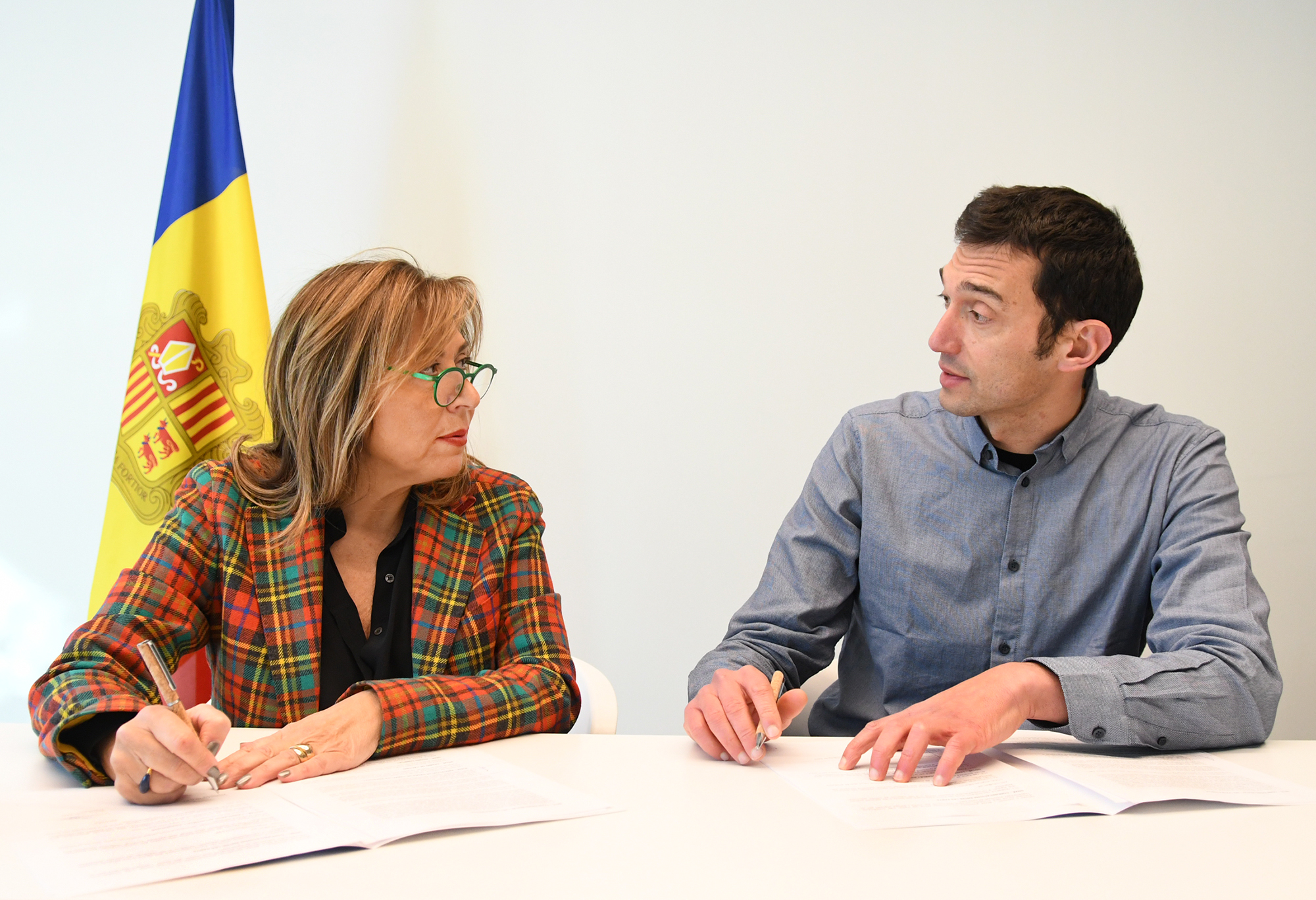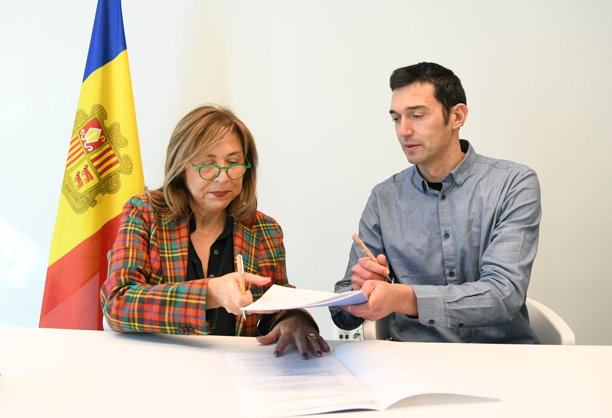La ministra de Presidència, Economia, Treball i Habitatge, Conxita Marsol, actuant com a presidenta del patronat d’Andorra Recerca Innovació (AR+I) i el president del Col·legi Oficial d’Enginyers d’Andorra (COEA), Vicenç Jorge Seco, han signat aquest dilluns un conveni de col·laboració entre les dues entitats amb l’objectiu, en paraules de Marsol, “d’enfortir una entesa que beneficiarà les dues parts i que tindrà un impacte positiu en la societat”.