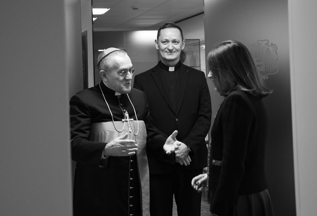 La ministra d’Afers Exteriors, Imma Tor, ha rebut de Mons. Piero Pioppo, nunci apostòlic de la Santa Seu, les còpies d’estil, pas previ a la posterior presentació de les cartes credencials davant del copríncep episcopal, Mons. Josep-Lluís Serrano Pentinat.