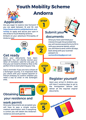 Si vous avez entre 18 et 30 ans et que vous souhaitez venir travailler en Andorre et vivre une expérience unique d'enrichissement personnel et professionnel dans nos vallées, ce programme est également fait pour vous.