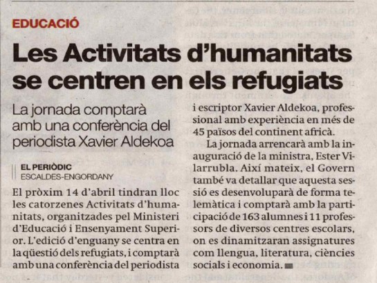 • Conferència per a alumnes: «Vides en suspens. Refugiats i rutes migratòries africanes cap a Europa»