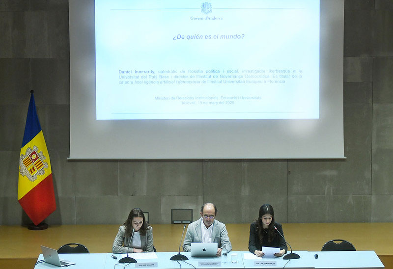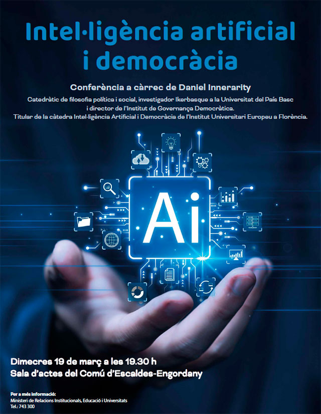 • Convidat: Daniel Innerarity, catedràtic de filosofia política i social, investigador Ikerbasque a la Universitat del País Basc, director de l‘Institut de Governança democràtica i titular de la càtedra Intel·ligència Artificial i Democràcia de l’Institut Universitari Europeu de Florència