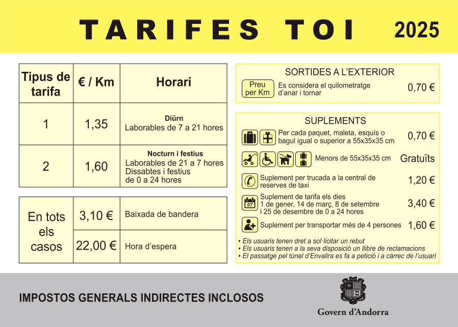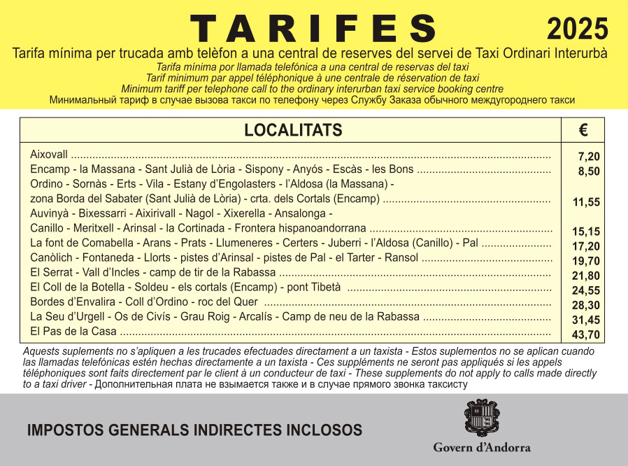 Descobreix tot allò relacionat amb Taxis visitant el portal del Govern d'Andorra. Tots els serveis i informació detallada.