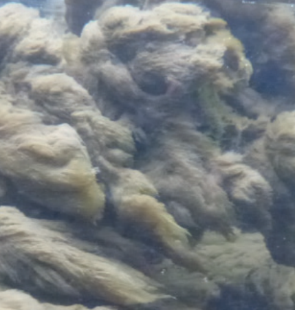 En períodes de proliferació, es formen monticles que voregen el llit dels rius. El color dels grups varia entre el marró groc i el blanc. Al tacte, les algues Didymo tenen una textura de llana humida. Els grumolls secs semblen restes de paper higiènic.